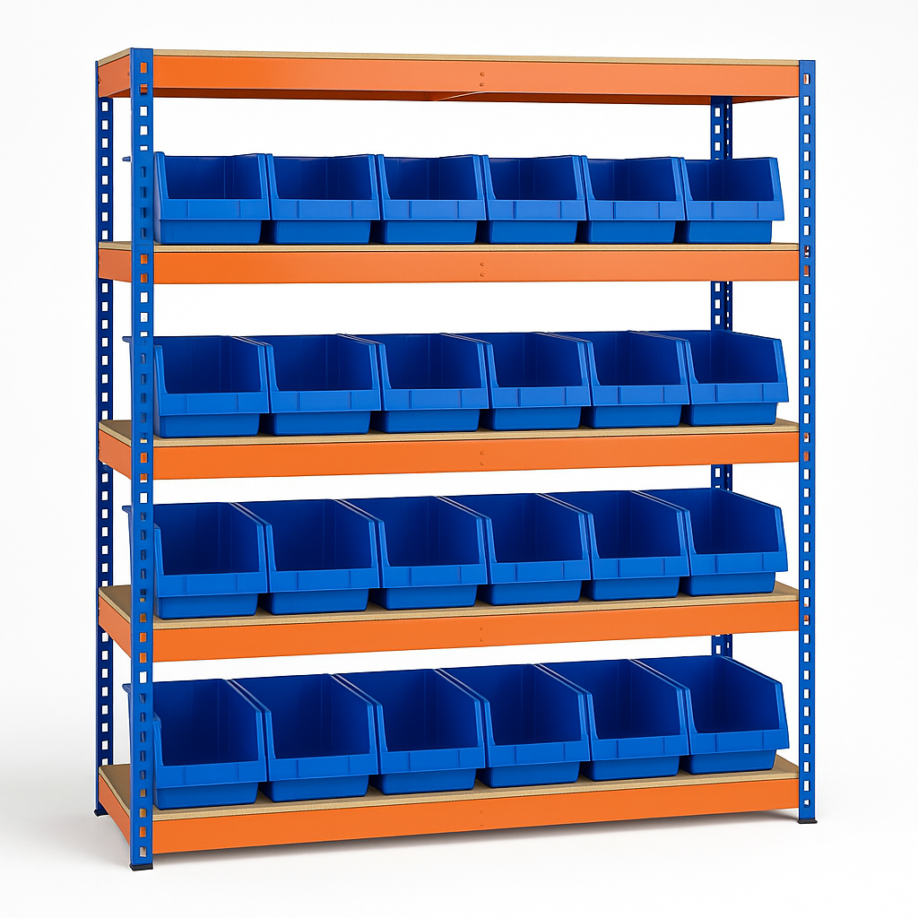 Heavy Duty Racking 5 Tier Shelving 1800mm H x 1200mm W x 600mm D with 30 Picking Bins