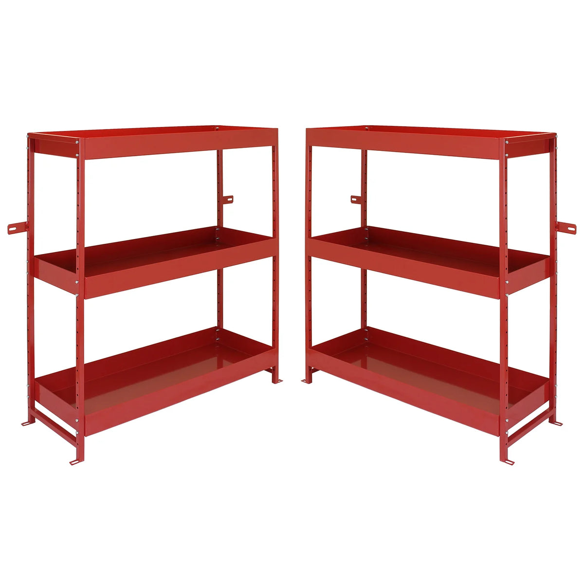 Built from heavy-duty, red powder-coated steel, these shelving units are tough, long-lasting, and look great in any van or workspace. Integrated fixing brackets ensure your shelves stay firmly in place during transit, giving you peace of mind wherever the job takes you.